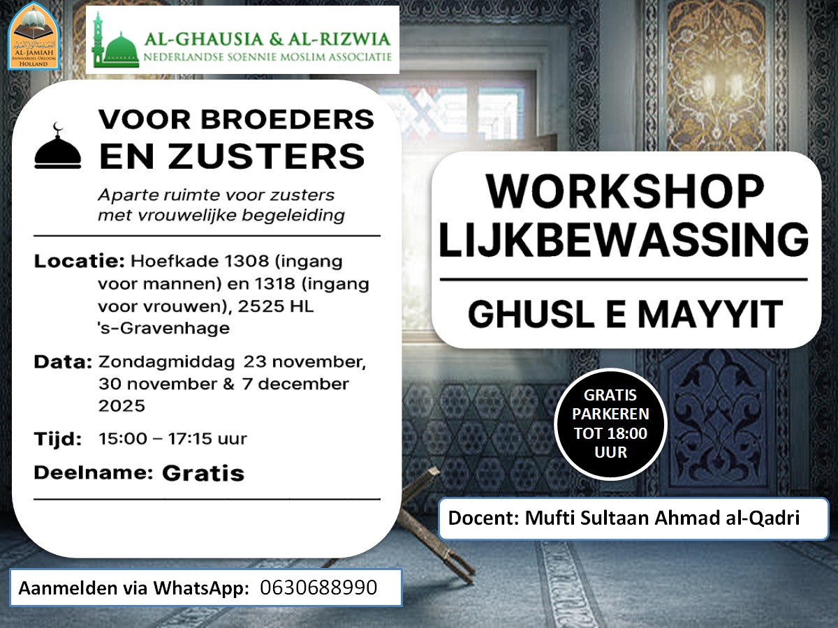 Evenement details AllesKomende20212022202320242025 Evenement details: zo30nov2025 Workshop Lijkbewassing15:00Masjid Al-Ghausia