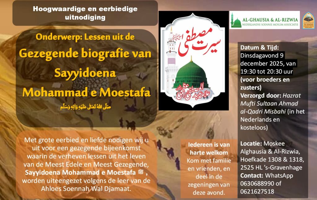 Evenement details AllesKomende20212022202320242025 Evenement details: di09dec2025 Sierat e Mustafa ﷺ19:30Masjid Al-Ghausia
