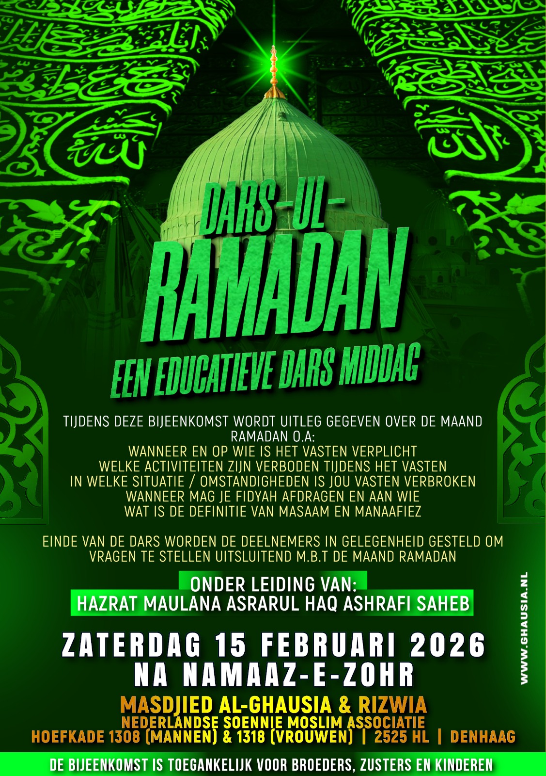 Evenement details AllesKomende202120222023202420252026 Evenement details: zo15feb2026 Dars-ul-Ramadan13:30Masjid Al-Ghausia